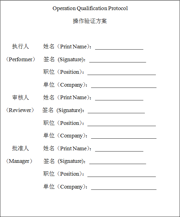 本次操作驗證(Operation Qualification)文件填寫目的是為了規范二氧化碳培養箱的操作過程和記錄而制定的。